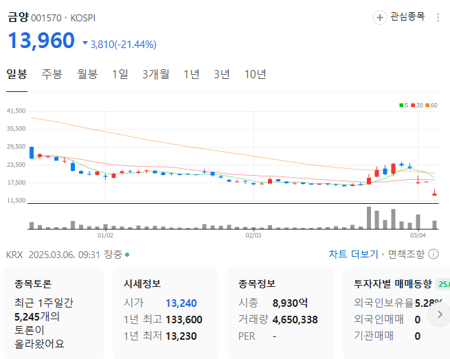 금양 주가 급락 원인 및 관리종목 지정 분석