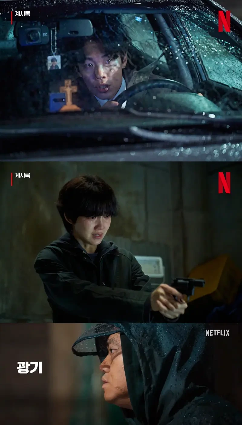 ‘계시록’은 인간 본성의 어두운 면과 신념의 충돌이라는 강력한 주제를 중심 이야기를 전개합니다. 예고편은 한 여중생의 실종으로 시작하는데, 이를 통해 두 인물 성민찬(류준열)과 이연희(신현빈)의 갈등이 펼쳐집니다. 성민찬은 신의 계시를 믿고 전과자 권양래(신민재)를 범인으로 의심하며 추격을 시작하고, 이연희는 죽은 동생의 환영에 시달리며 사건을 추적합니다.