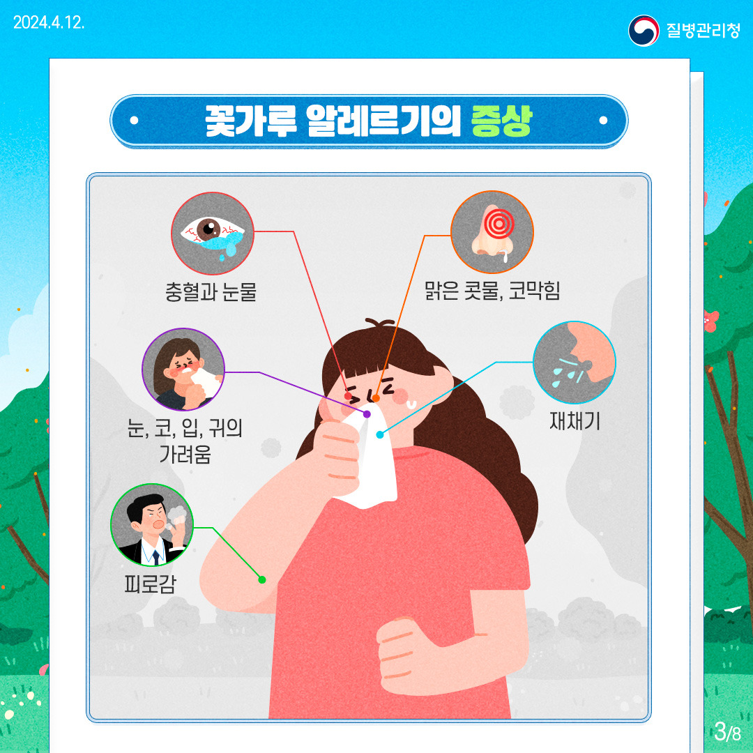 "봄의 아름다움이 알러지로 인해 아픈 기억으로 남지 않도록 주의합시다."