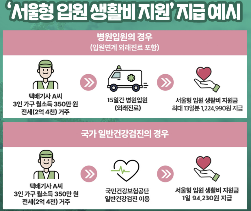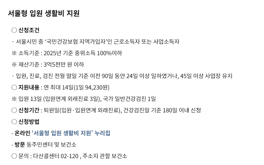 - 온라인 신청: 서울형 입원생활비 지원 누리집