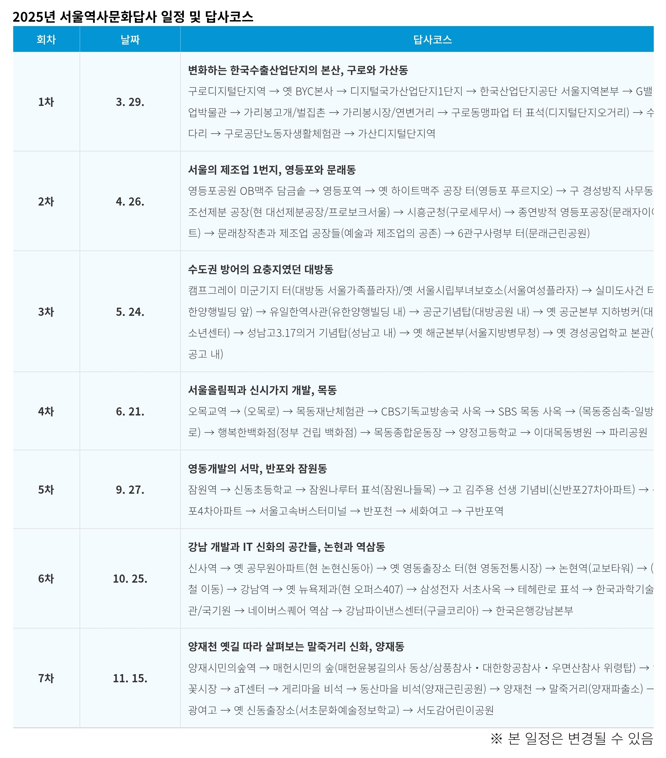 이번 탐방을 통해, 당시의 개발 정책이 현재까지 영향을 미치는 방식을 학습하고, 보다 나아가 서울의 미래를 논의할 기회를 가질 수 있습니다. 🥇