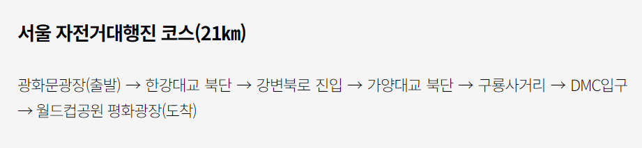 행사 당일, 참가자들은 건강하고 안전하게 라이딩을 즐기고, 도착지에서는 축하 공연과 다양한 체험 프로그램이 마련되어 있습니다. 이번 기회에 여러분도 자전거와 함께 서울의 매력을 더욱 느껴보세요! 🚲🎉