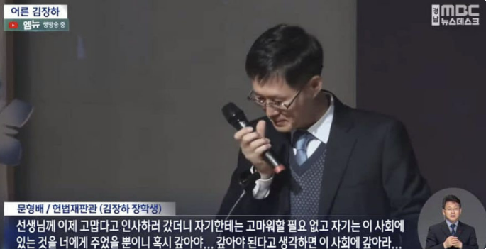 문형배 재판관은 김장하 선생님이 전해준 가치를 자신의 삶 속에서 실현해가고 있습니다. 청년들에게 가장 중요한 것은 희망과 미래에 대한 신념입니다. 문형배 재판관 또한 김장하 선생님의 가르침을 바탕으로 현 사회에서 민주주의와 정의를 위해 힘쓰고 있습니다.