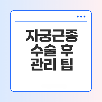 적절한 회복 관리는 회복 기간을 단축시키고, 수술 후 부작용을 예방하는 데 도움이 됩니다. 자궁근종 수술 후에는 이와 같은 기초 관리 방법을 충실히 이행하여 건강을 빠르게 회복하실 수 있습니다. 건강이 최고입니다! 🏥✨