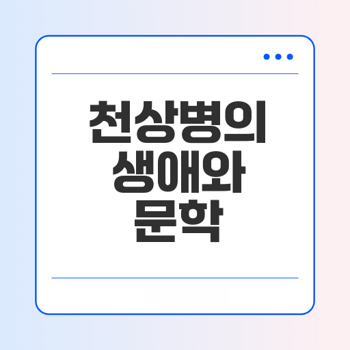 이렇게 천상병의 생애는 다양한 사건과 감정을 통해 이루어졌습니다. 그의 문학은 그러한 생애를 바탕으로 만들어졌기에, 그가 남긴 시는 단순한 글이 아니라 그의 인생 이야기를 담고 있는 증거입니다.
