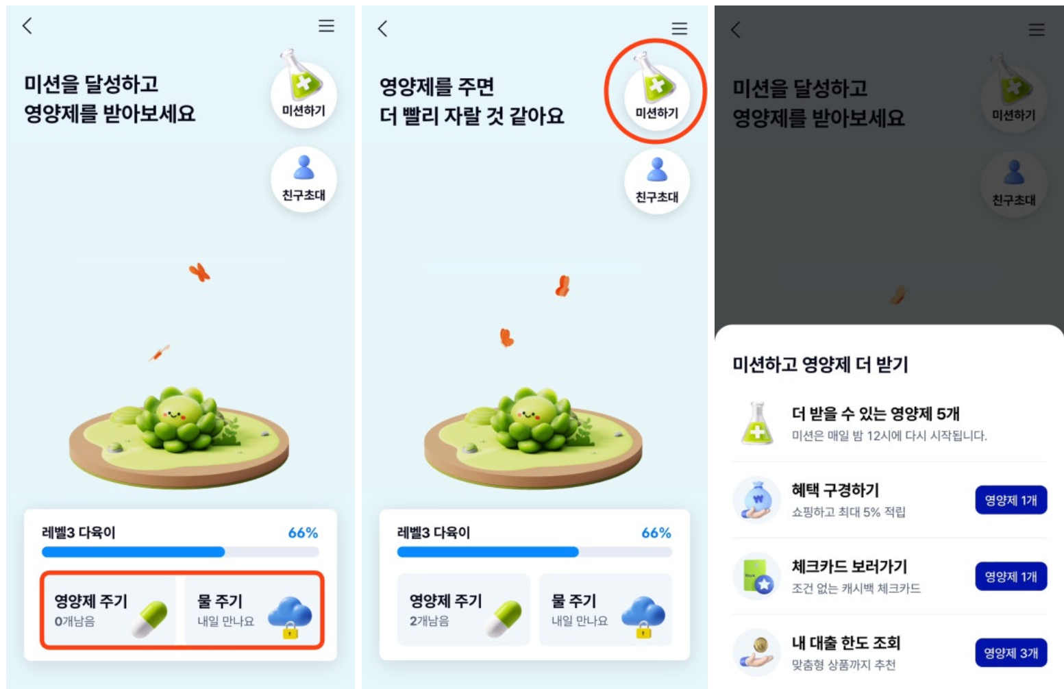 게임의 흥미를 금융 활동에 결합한 돈나무 키우기는 사용자가 매일 출석 체크와 미션 수행을 통해 성장 자원을 얻고, 나무를 키우는 방식으로 운영됩니다. 특히, 게임처럼 즐기면서도 실질적인 보상을 받는다는 점에서 많은 사용자의 참여를 유도합니다.