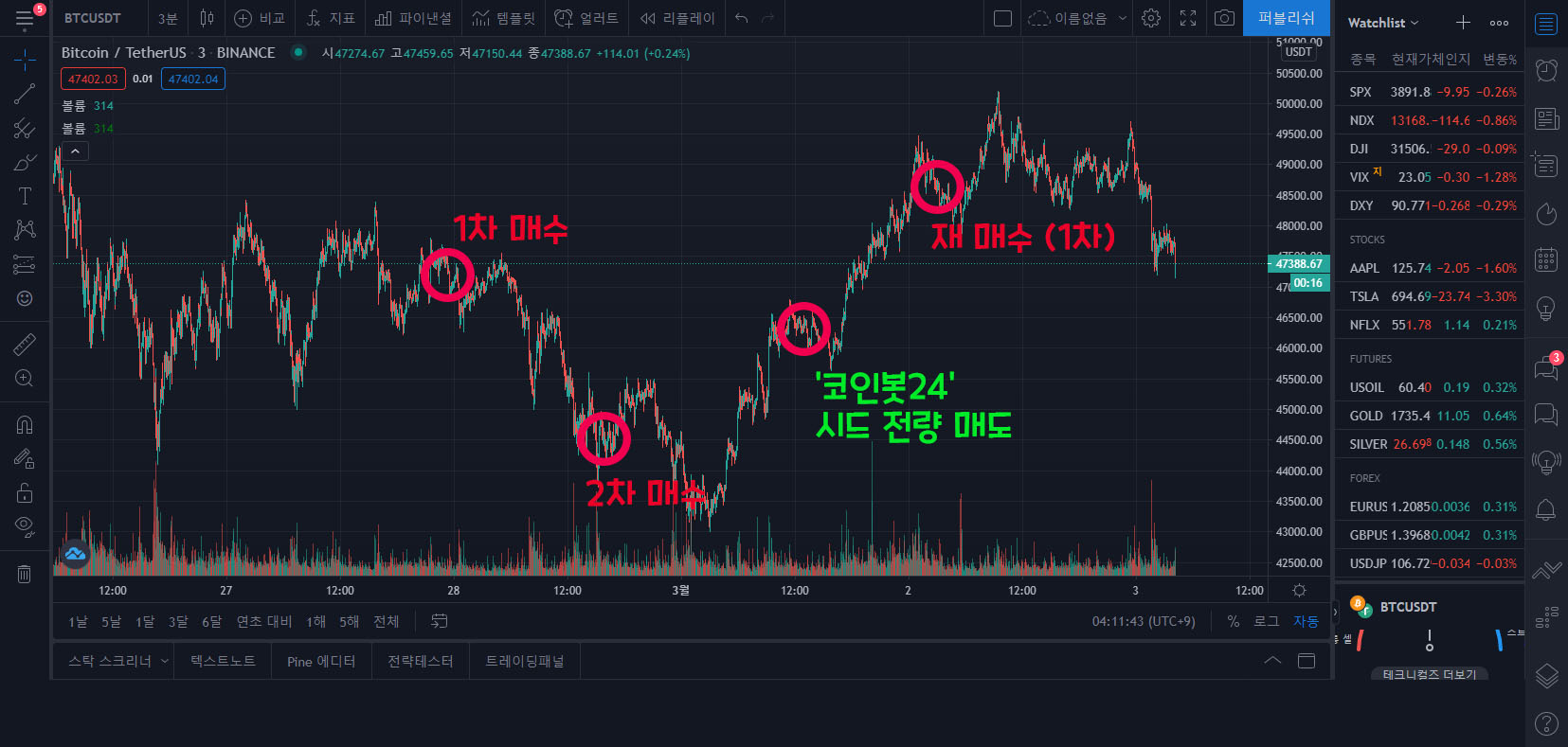 DCA 봇의 장점은 하락장에서 매입 단가를 낮추는 데 유용하다는 것입니다. 이를 통해 장기적인 안정성을 추구할 수 있었어요. 하지만 단기적으로 큰 수익을 얻긴 어려웠습니다. 상투를 맞추는 것은 항상 어렵기 때문에, 꾸준히 매수해 나가는 전략이 강점으로 작용했죠. 💰