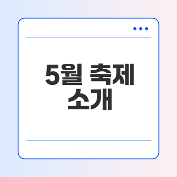 5월은 다양한 문화 행사와 체험이 가득한 축제를 통해, 여러분의 삶에 따뜻한 기억과 즐거움을 더할 수 있는 최적의 시간이 될 것입니다. 각 지역의 축제에 꼭 참여해 보시길 추천합니다!
