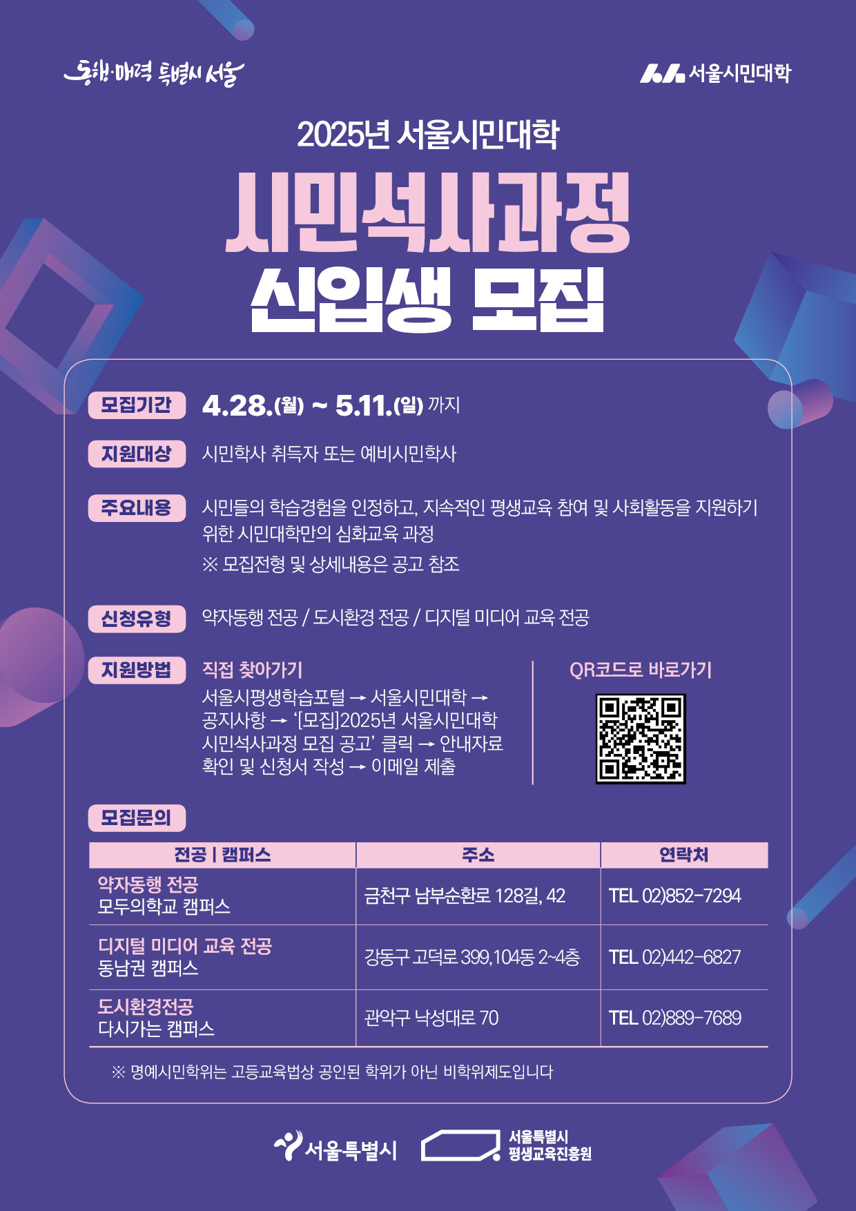 2025년 서울시민대학 시민석사과정에 대한 자세한 정보와 다양한 문의처를 안내해 드립니다. 아래 내용은 신청과 관련하여 궁금하시거나 도움이 필요하신 분들을 위한 것입니다. 😊