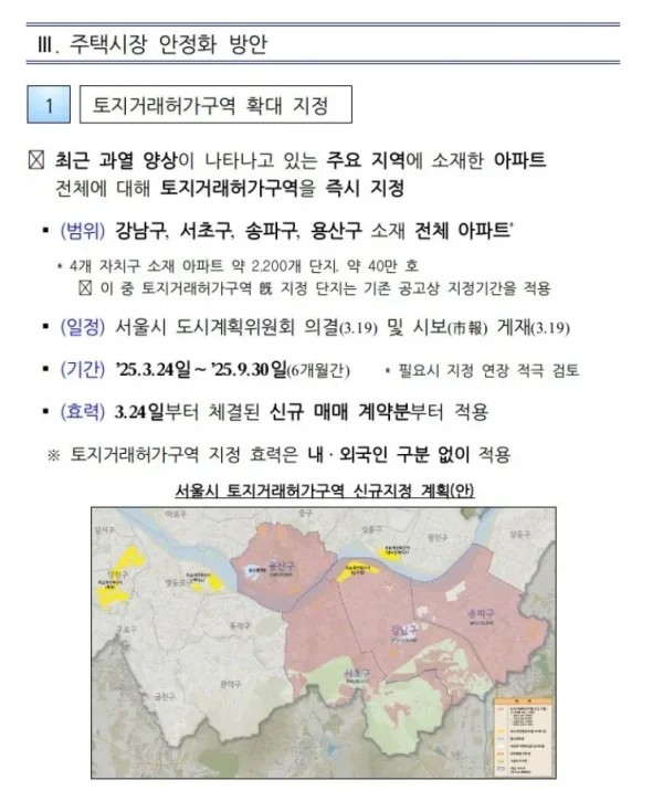 예를 들어, 토지거래허가구역을 지정하여 서울 강남3구 및 용산구의 아파트 거래를 관리하고, 집값 급등을 억제하는 조치를 취했습니다. 이를 통해 주거의 안정성을 높이고, 가계가 안정적으로 주거비를 관리할 수 있도록 돕는 방향으로 나아가고 있습니다.