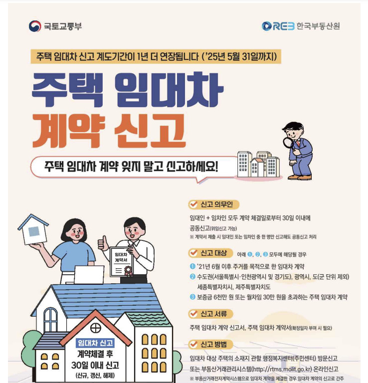 계도기간 연장을 통해 많은 사람들이 임대차 신고제에 대한 이해도를 높이고, 나아가 주택 임대차 시장의 투명성을 확보하고 안정화를 이루는 데 기여할 수 있기를 바랍니다. 계도기간 내에 반드시 신고를 완료하도록 유의하시길 바랍니다!