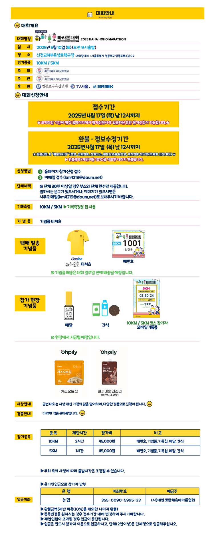 하하호호마라톤의 일정은 조기 마감이 예상되므로, 관심 있는 분들은 2025년 2월 1일부터 4월 17일 사이에 신청하시기 바랍니다!