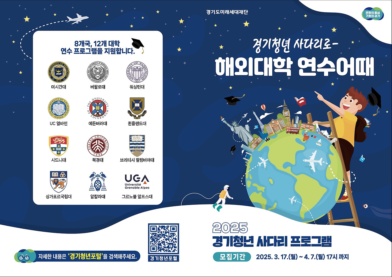 2025년 경기청년 사다리프로그램은 청년들의 글로벌 경쟁력을 키우기 위한 최고의 기회입니다. 세계 각국의 대학에서 제공하는 다양한 연수 프로그램을 통해 보다 넓은 시각을 가진 글로벌 인재로 성장할 수 있으며, 자신만의 길을 만들어가는 데 많은 도움을 받을 수 있습니다. 청년 여러분, 이 기회를 놓치지 마세요!