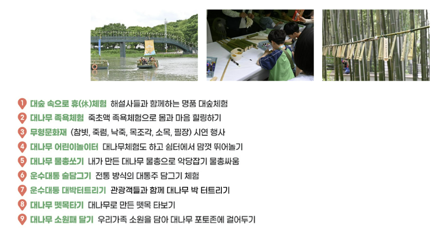 특히, 대나무를 활용한 체험 부스와 전시는 아이들에게 대나무에 대한 친숙함과 흥미를 불러일으킬 수 있는 기회가 될 것입니다.