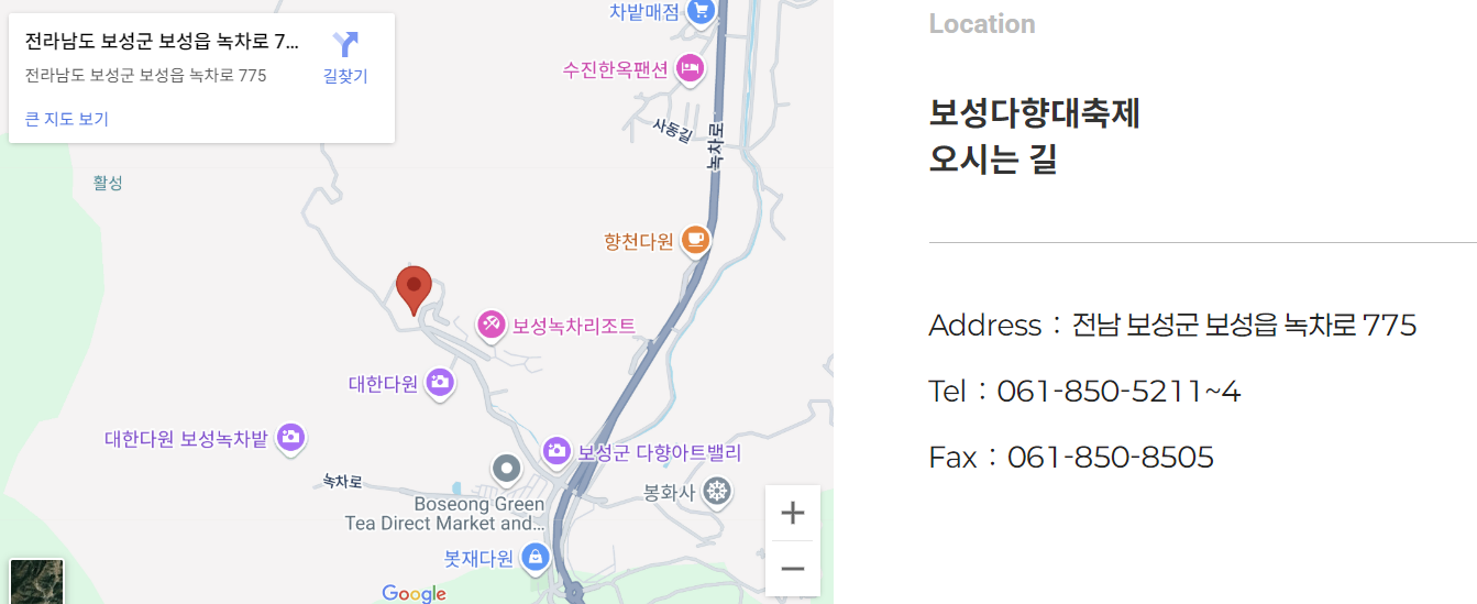 축제장에 대한 지도는 보성 다향대축제 공식 홈페이지에서 확인할 수 있으며, 미리 위치를 파악해 가는 것이 좋습니다.