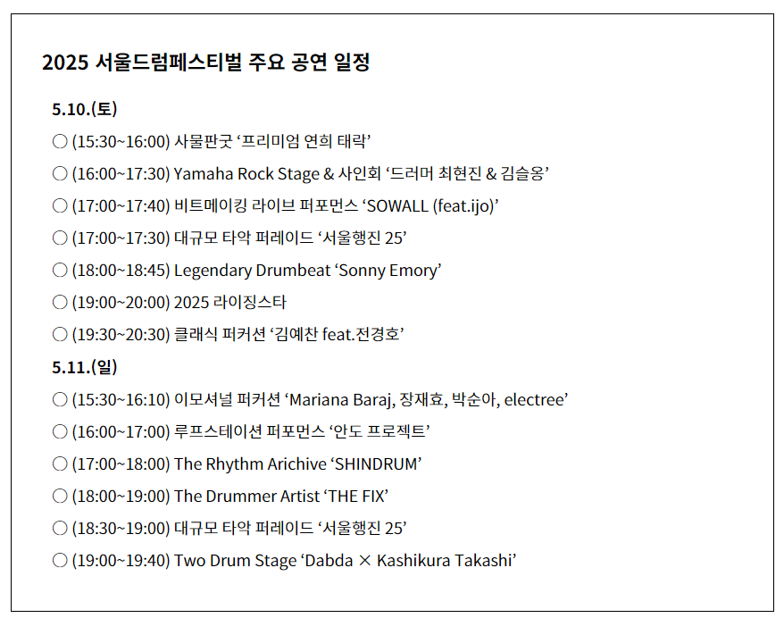 2025 서울드럼페스티벌 일정 및 주요 내용