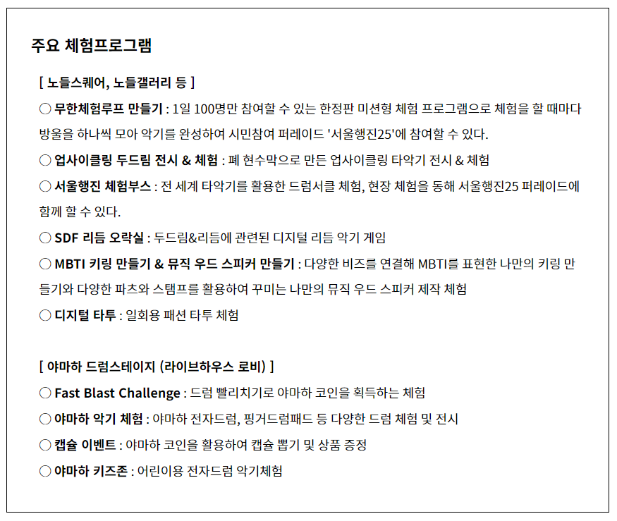 2025 서울드럼페스티벌 일정 및 주요 내용
