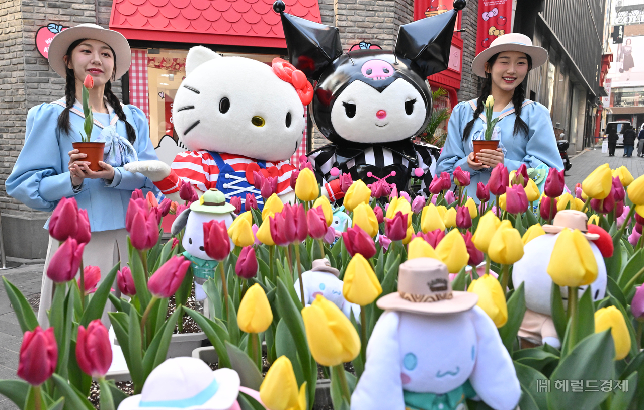 9종의 산리오 캐릭터들과 봄꽃의 향연