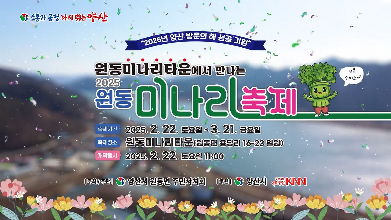 2025년 2월 22일(토)부터 2월 23일(일)까지 이틀 간 열리는 이번 축제는 경상남도 양산시 원동면 용당리 16-23에 위치한 미나리 타운에서 진행됩니다. 이곳은 미나리의 고장으로도 유명하며, 아름다운 자연 속에서 다양한 미나리 관련 체험 프로그램을 즐길 수 있는 최적의 장소입니다. 🌿