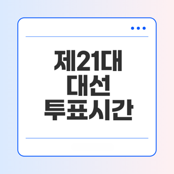 제21대 대선은 2025년 6월 3일에 진행됩니다. 본 투표는 오전 6시부터 오후 8시까지 이루어지며, 각 유권자는 해당 시간 안에 자신이 지정된 투표소에서 투표해야 합니다. 사전 투표는 5월 29일(목) 및 30일(금)에 오전 6시에서 오후 6시까지 가능합니다.